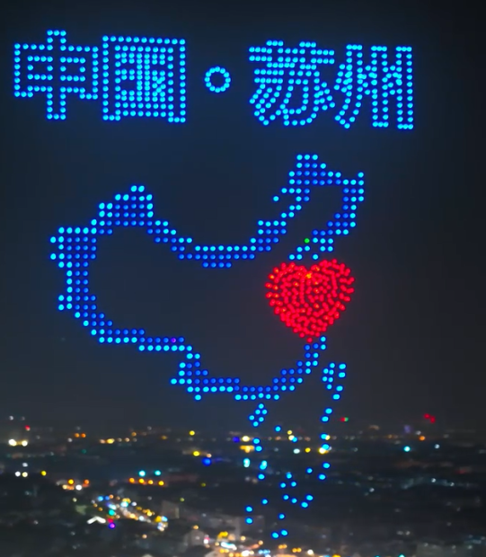 The drone light show is an important part of the warm – up interactive activities for Suzhou’s cultural and tourism promotion. Here is a detailed introduction: – **Scale and Visual Impact**: A total of 1,000 drones participate in the show, which can form various large – scale and spectacular aerial patterns and images. Through precise flight control and coordinated lighting effects, they present a rich and diverse visual feast in the night sky, such as the iconic landscapes of Suzhou, cultural symbols, and patterns related to tourism, deeply impressing the audience. – **Technical Support**: The flight of these drones is based on advanced flight control technology and precise positioning systems. Each drone is equipped with high – performance sensors and communication modules, which can receive instructions in real – time and adjust its flight attitude and lighting effects accurately. This ensures the high – precision cooperation of the entire drone fleet, enabling them to complete complex flight maneuvers and form vivid and clear images. – **Interactive Elements**: The drone light show is designed with interactive elements. For example, it may be synchronized with the music on – site, and the rhythm and color changes of the lights are coordinated with the music to enhance the immersive experience of the audience. In addition, some shows may also set up interactive links with the audience. For example, through a mobile app, the audience can vote for their favorite patterns or participate in simple interactive games to make the audience feel more involved. – **Combination with Cultural and Tourism Themes**: The content of the drone light show is closely combined with the cultural and tourism characteristics of Suzhou. It may display the beautiful scenery of the ancient city of Suzhou, such as the Grand Canal, classical gardens, and ancient bridges, as well as cultural elements such as Kunqu Opera and Suzhou embroidery, demonstrating the unique charm of Suzhou’s culture and tourism. This not only brings a stunning visual experience to the audience but also effectively promotes Suzhou’s cultural and tourism resources, attracting more people to understand and visit Suzhou.